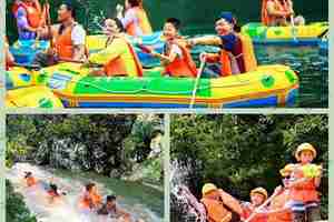 畅玩欢乐水世界、沐浴养生温泉、亲子水乐园 安全好玩的峡谷漂流 生态采摘时令蔬果 成人、小孩、亲子休闲等各类人群