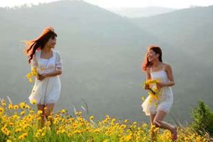 伫立黄花丛中,太阳从东方冉冉升起,朝霞映红了大地,乡村炊烟袅袅,仿佛一幅田园风景画;傍晚,游走在黄花丛中,在夕阳的映照下,朵朵金钱菊伴着微风,摇曳多姿,熠熠生辉,犹如一幅惹人心醉的山水画;雨过天晴,漫步在黄花丛中,峡谷中升起的雾气与蓝天白云交相辉映,满山花海时而被雾气笼罩,时而露出少女般羞涩的面容,恰似一幅海市蜃楼的仙境画。