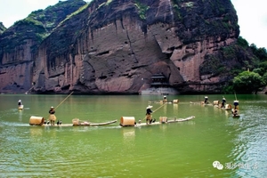 乘坐竹筏戏水,赏两岸鬼斧神工的丹霞风貌。看仙水岩的百米绝壁上的距今2600多年的春秋战国崖墓群。