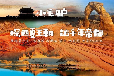 小毛驴会员价2600元/人 探秘西夏王朝,穿行腾格里沙漠,大话西游宁夏镇北堡,世界奇迹雨岔大峡谷,水上丹霞波浪谷,千年帝都西安城,世界名山崆峒山,革命老区延安城。 您可以选择自费前往西安酒店集结 ,还可以选择免费乘坐小毛驴为大家提供的武汉-西安 往返旅游大巴。