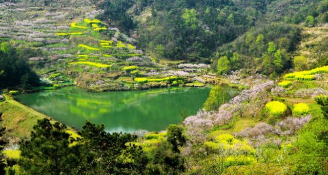 每年春季,这里桃花红了,梨花白了,菜花黄了,错落有致,一层一层铺展在梯田之上。那碧绿的湖水,幽深的峡谷,青翠的山林,加上那古树老桥,一排排仿古民居,还有那热情朴实的村民。把整个小山村打造成一幅如诗般的山水墨画。