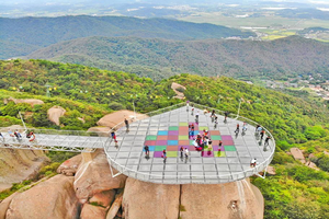 1.网红景点巨石山---漫步玻璃栈道,跨越惊险刺激的悬崖跳桥。体验竹排漂游的乐趣,有机会欣赏少数民族风情演出。巨石山集玻璃平台、玻璃长廊、玻璃栈道三玻为一体,有520米海拔高度,520度天空绝景巨石山,520玻璃观景台,连玻璃都是爱你的形状。