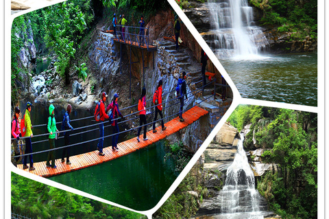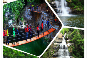 漫步空中栈道,两旁悬崖峭壁如刀斧砍一般自然生成。青鱼潭、磬口潭、秤杆子潭、牛眼睛潭、芭茅潭、官财潭、响龙潭等。欣赏峡谷瀑布群,洞穴处处可见,峰奇壁异,神秘莫测。峡谷内体验索桥飞架,绝壁栈道,峡谷天梯。