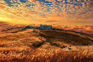 武功山的高山草甸海拔之高,面积之广在世界同纬度名山中都是绝无仅有的。10万亩草甸绵绵于海拔1600多米的高山之巅,穿云入雾,春夏绿油油,秋季金灿灿,冬天白皑皑,游人无需远赴边陲,便可领略北国风光,真可谓“天上草原、人间仙境、北国风光、绿色家园”,被专家称为“奇山伴草甸,天下一绝。”