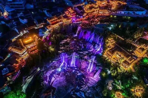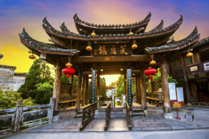 夜色璀璨、瀑布悬崖、吊脚楼、古寺庙、宗祠堂、书斋院、小酒吧、客栈、别墅、这一切都是这座千年古镇的历史见证。