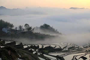 蕲春雾云山梯田,久负盛名。这是一片来自唐朝时期就已形成的高山梯田,坐落于蕲春县檀林镇,素以面积广阔、景色壮美著称,主要分布在蕲春北部高山区的山区坡地,海拔多在600米以上。雾云山梯田群的地形、地貌和天地合一优美绝伦的线条 ,云雾缭绕梯田村落的日出壮景,很快吸引了省内外摄影爱好者和旅游爱好者云集雾云山,争相目睹这处田园风光奇观。行走在长达数千米的环山步行旅游栈道,不经意中总会发现许多令人陶醉的美景。不论是远眺还是近观,都是摄者镜头里的好风景。