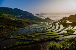 早餐后乘车,欣赏山水田园风光,前往有着湖北小元阳的雾云山梯田景区。这是一片来自唐朝时期就已形成的高山梯田,面积广阔、景色壮美著称,梯田群的地形、地貌和天地合一优美绝伦的线条 ,行走在长达数千米的环山步行旅游栈道,不经意中总会发现许多令人陶醉的美景。不论是远眺还是近观,都是一副壮观的山水田园。