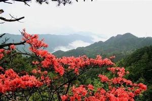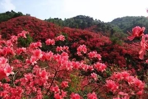 四月中旬大幕山上的杜鹃花青山披绿戴红,杜鹃花在阳光的照射下愈发显得娇艳欲滴,一簇簇,一丛丛;与远处层峦叠嶂的山峰构成了一幅绝妙的画卷。