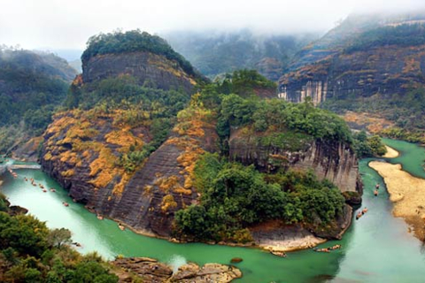 早餐后出发,进入双世界遗产地址公园--武夷山风景区。景区景点众多,主要代表景观有九曲溪、天游峰、一线天、水帘洞、武夷宫等。这里的108个景点组成了武夷山的四季美景,每个季节都有精彩。可以乘景交车前往天游峰,天游峰有“不登天游,武夷虚游”之说。作为武夷山第一胜地,位于武夷山景区中部的五曲隐屏峰后九曲溪北,景区中心海拔408.8米。东接仙游岩,西连仙掌峰,宛如置身于蓬莱仙境,遨游于天宫琼阁,故名天游,为武夷第一险峰。中午灵活午餐,下午游玩武夷宫,或自愿自费乘坐九曲溪竹筏等。