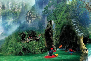 漫步千年古道,穿越山水画廊,过隧道,跨吊桥,登悬崖,赏奇石,游峡谷,清澈见底的蓝湖,喀斯特地貌景观。这将是一条绝美的世外桃源级风景线。