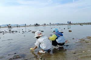 滩涂上还可以捡海螺,捉小螃蟹