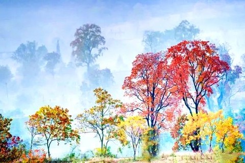 大别山红叶景区位于大悟县四姑镇北山村,国家4A级旅游景区,总面积6.5平方公里,漫山遍野的乌桕树叶五彩斑斓,与青山绿水、农家黛瓦构成一幅梦幻般的金秋图画。