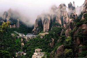 三清山景区位于上饶市东北部,有“小黄山”之称,因玉京、玉虚、玉华三座山峰挺拔屹立,神似道教玉清、上清、太清三位尊神列坐在山巅之上而得名。这里是道教名山,景色也有几分仙气,能看漂亮的云海日出,欣赏山间惟妙惟肖的奇石,还能走上高空栈道赏景。美国国家公园基金会主席保罗先生慕名来到三清山后,惊叹道:“三清山是世界上为数极少的精品之一,是全人类的瑰宝”;《中国国家地理》杂志推选其为“中国醉五大峰林”之一;中美地质学家一致认为她是“西太平洋边缘美丽的花岗岩”。