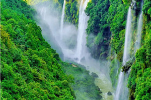 九龙瀑布群---《中国国家地理》评选的中国最美的六大瀑布,最大的瀑布群,三峡悬流,一目十瀑,彩虹临波,世外仙境。烟雨、微风、碧水;流云、飞花、青山,在你面前展开一幅壮丽的山水画卷。层层叠叠,自成一绝。“集桂林之灵秀、版纳之风情、九寨沟之幽静、汇三峡之险峻、黄果树之雄奇。