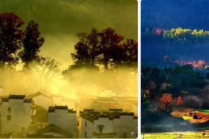 中国婺源被誉为世外桃源---篁岭风景区。挂在山崖上的篁岭古村,地无三尺平,由索道空中揽胜、村落天街访古、梯田花海寻芳及民俗晒秋拾趣等游览区域组合而成。每到秋日,家家户户凿窗采光、支架晒物,记录着粉墙黛瓦的古朴徽派建筑间点缀着色彩艳丽的秋收果实,成就一幅民俗风情杰作。