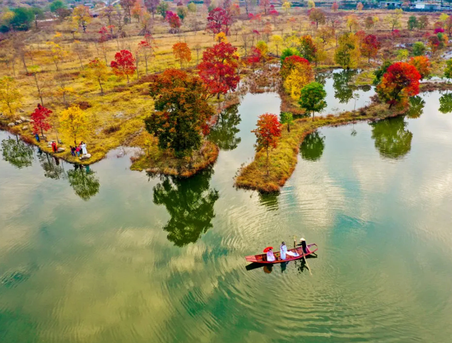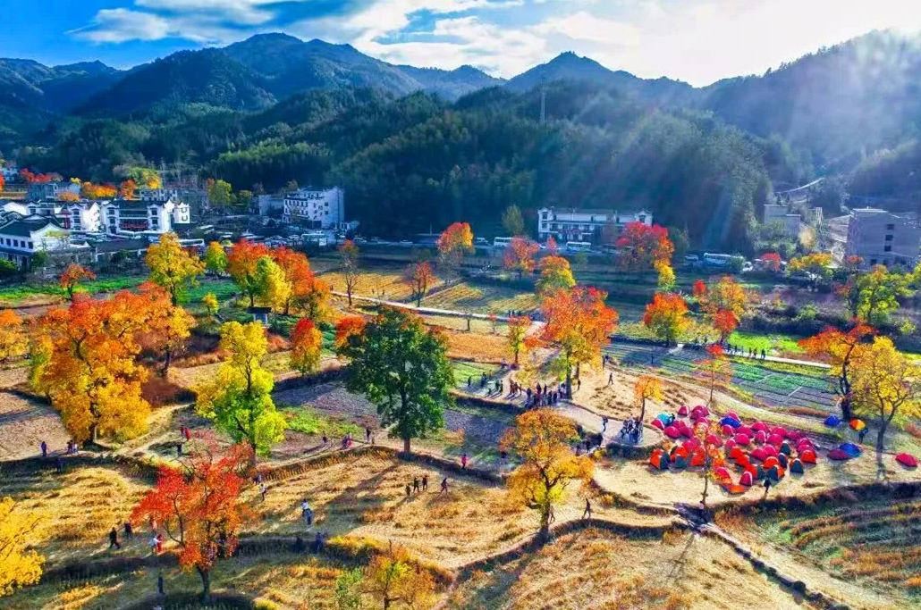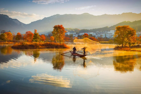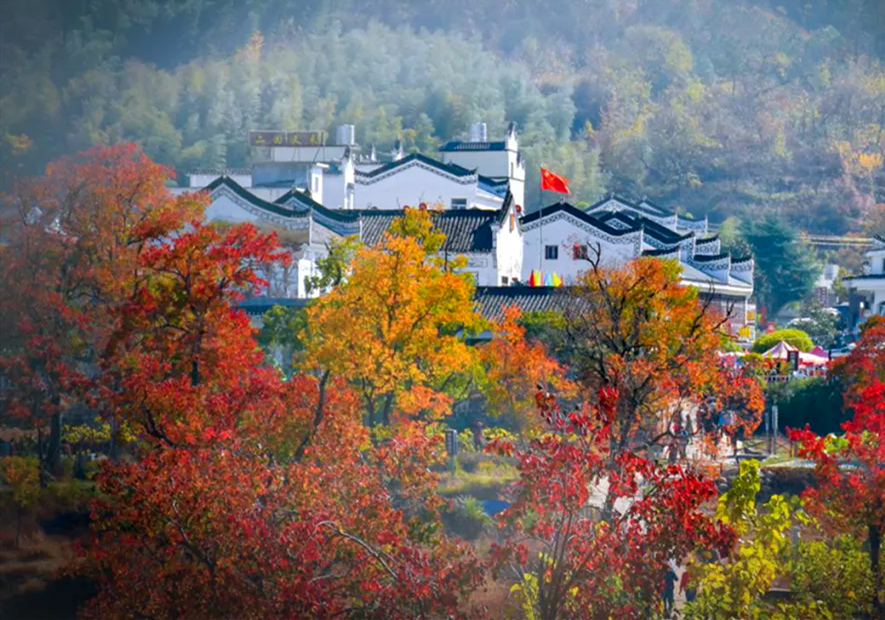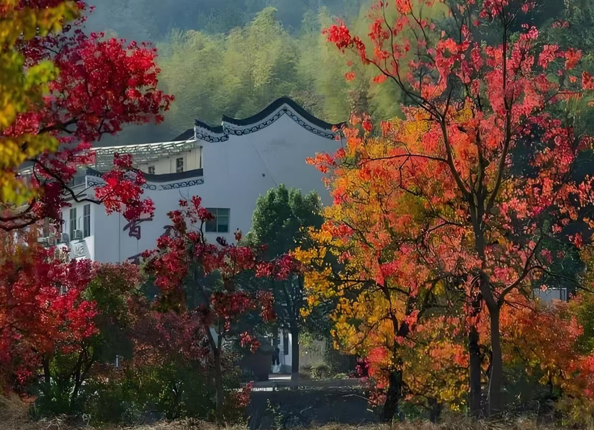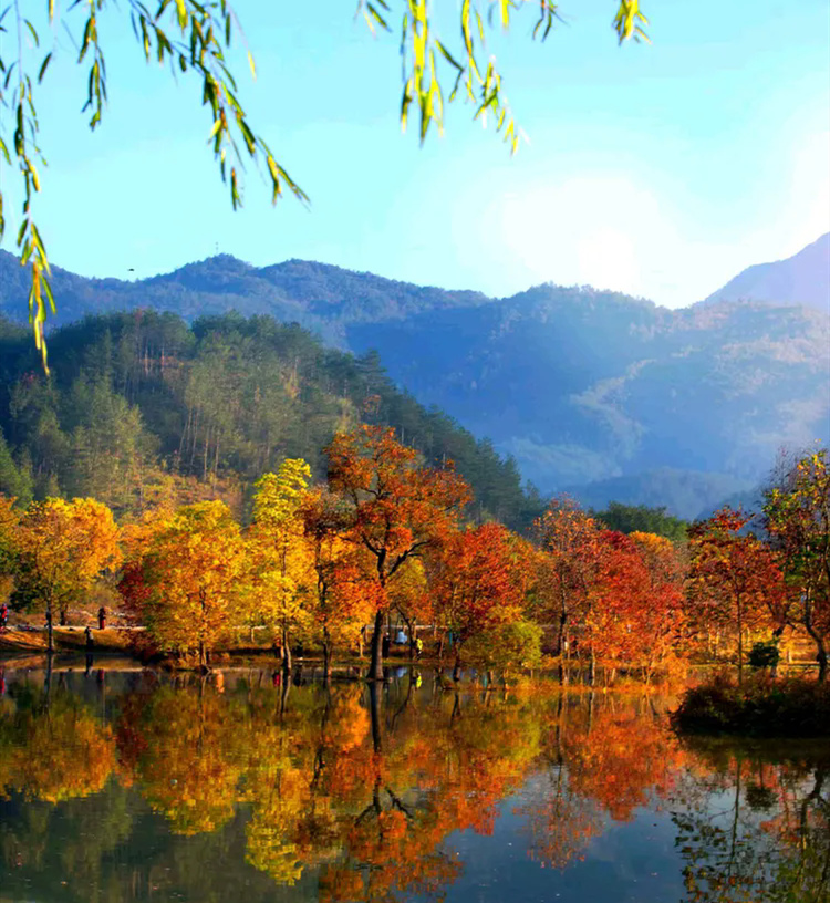 这里乌桕,红枫11月中上旬,火红一片,田园风光秋色浸染,游玩后还可以自由品尝农家吊锅,中餐后驱车前往,水上红叶打卡区,山峦倒映,红叶衬托,天堂寨脚下最美画卷