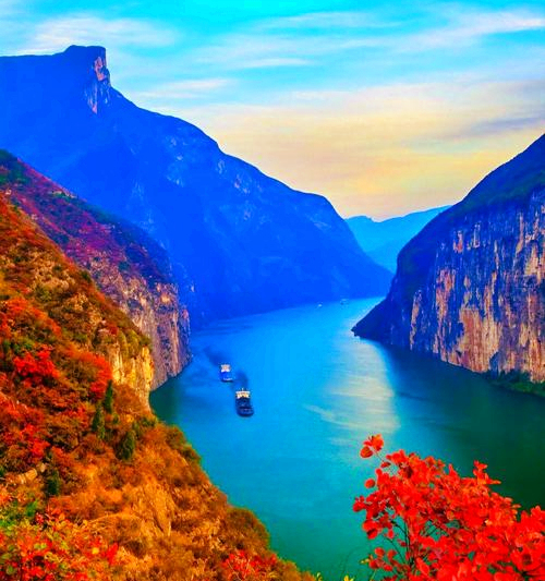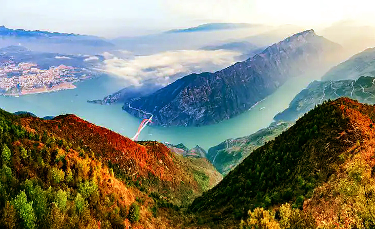 三峡之巅是重庆奉节县的国家4A级景区,以俯瞰瞿塘峡全景和丰富文化体验著称,每到12月上旬,深秋红叶,壮美三峡,非常漂亮
